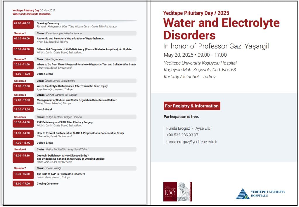 Yeditepe Pituitary Day, scheduled to take place on May 20, 2025, will focus on “Water and Electrolyte Disorders.”