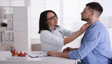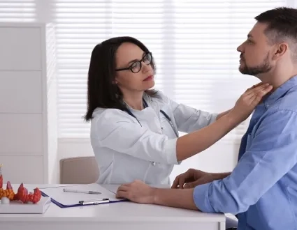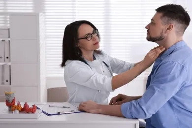 A less common condition is an enlargement of the thyroid gland by forming nodules. These bumps may vary in size from several millimeters to several centimeters.