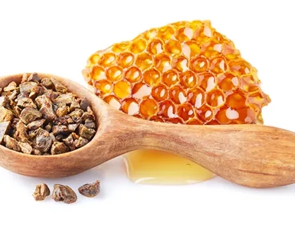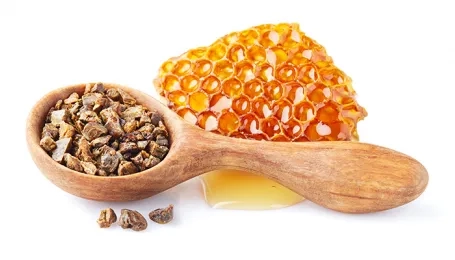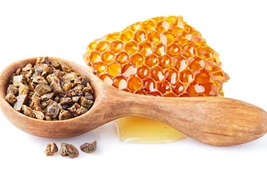 Propolis is a bee product produced by bees by processing resinous substances collected from the buds and stems of plants. Bees produce propolis to repair cracks in the hive in order to protect the hive against microorganisms and external factors. While producing it, bees mostly use the resins of poplar and pine trees. Propolis contains 45% resin, 30% wax, phenolic compounds, and 5% minerals and vitamins.
