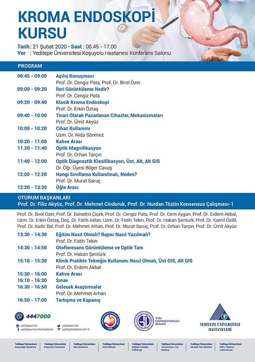 Kroma Endoskopi Kursu 21 Şubat 2020 tarihinde Yeditepe Üniversitesi Koşuyolu Hastanesi Konferans Salonunda gerçekleştirilecek.